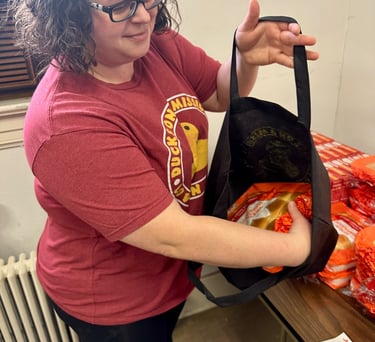 Another way to get involved is through volunteering with us. Whether you join us at the Vinton Fall Festival and play duck games, help us fundraise for our missions, or check-in families on Pack & Pick-Up Day, we need your help to make an impact!